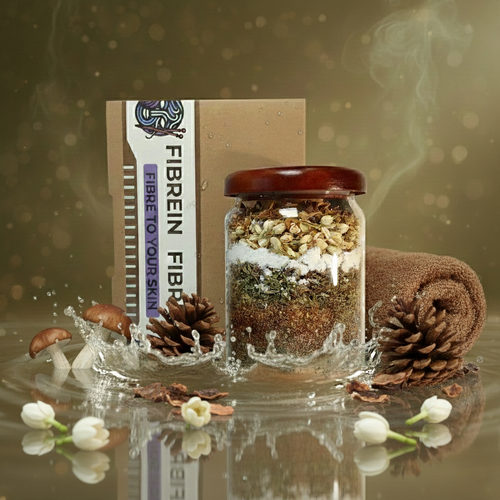 Hand-picked botanicals meet our Hydrocolloid Fibre-Complex — a weave of soluble & insoluble natural fibres that bloom in warm water, forming a silky cocoon that wraps your skin like softly knitted nature.